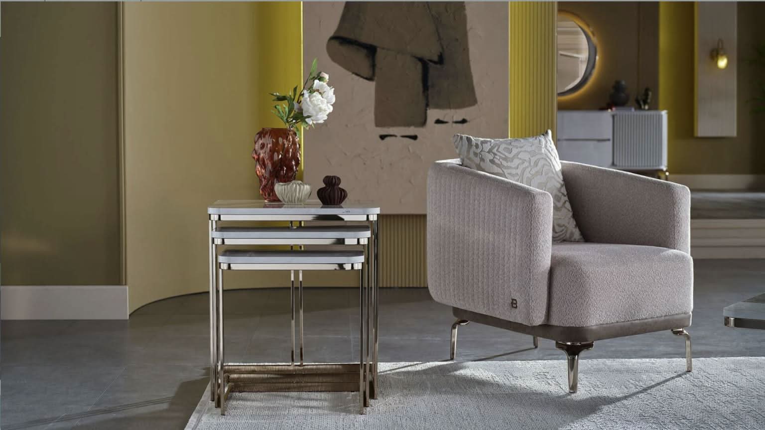 The Estella Nesting Table Set brings modern sophistication and practicality into one elegant form. With sleek metallic frames and glossy marble-effect tops, these tables add both depth and light to your living space.