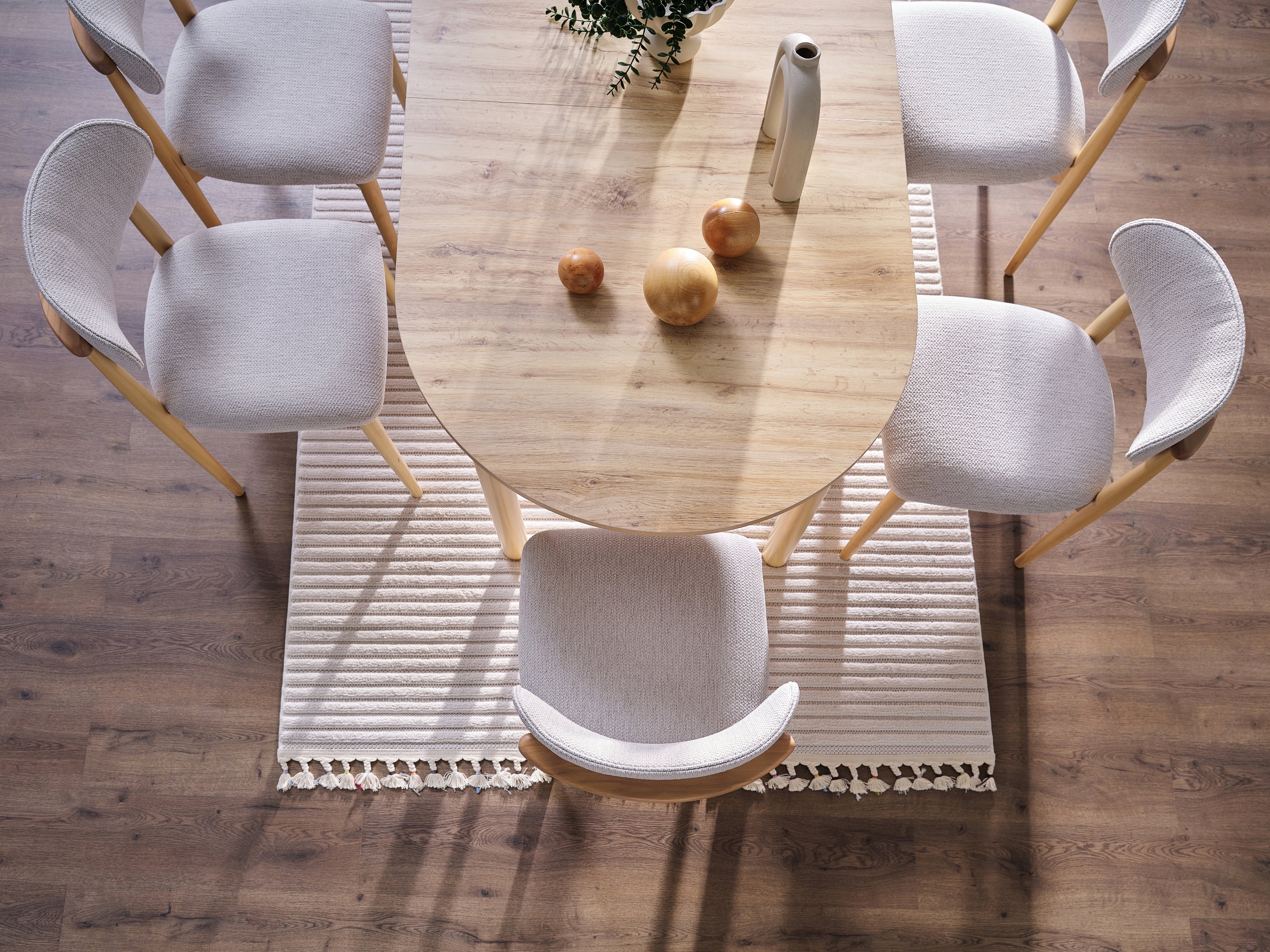 The Boheems Dining Room Set showcases timeless craftsmanship with solid oak wood construction that promises durability and lasting elegance. This comprehensive collection combines a sturdy dining table with coordinating seating, creating a cohesive foundation for your dining space. Oak's natural grain patterns and warm tones add character and sophistication to any room aesthetic. Built to withstand daily use while maintaining its refined appearance, this set serves as both a functional gathering place and a statement piece that elevates your home's interior design. Perfect for families seeking quality furniture that balances traditional appeal with practical longevity.