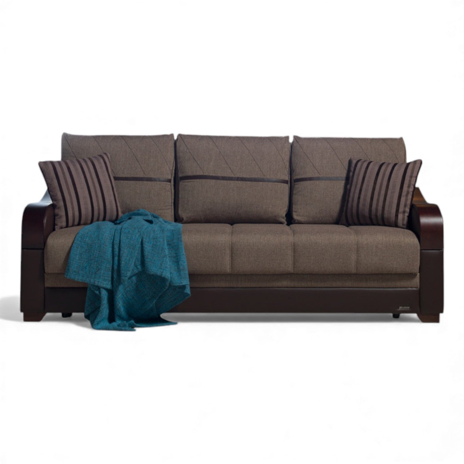 A Coleção Bennett é um conjunto clássico para sala de estar com um toque moderno. O estilo de transição apresenta elementos de design tradicionais e modernos, como o debrum em losango nas almofadas removíveis do encosto, o estofamento com botões no assento e uma combinação de couro sintético e tecido com apoios de braço em madeira polida. Cada peça da coleção oferece espaço de armazenamento embutido e se transforma facilmente em uma cama, proporcionando praticidade tanto para o dia quanto para a noite. Crie um conjunto completo para a sala de estar ou distribua as peças pela casa para um visual harmonioso em todos os ambientes.