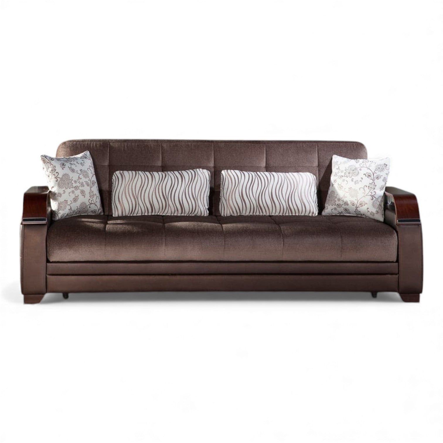 Sofá-cama Natural Sleeper – 223 cm de largura com braços de madeira e espaço de armazenamento oculto | Sofá moderno e funcional