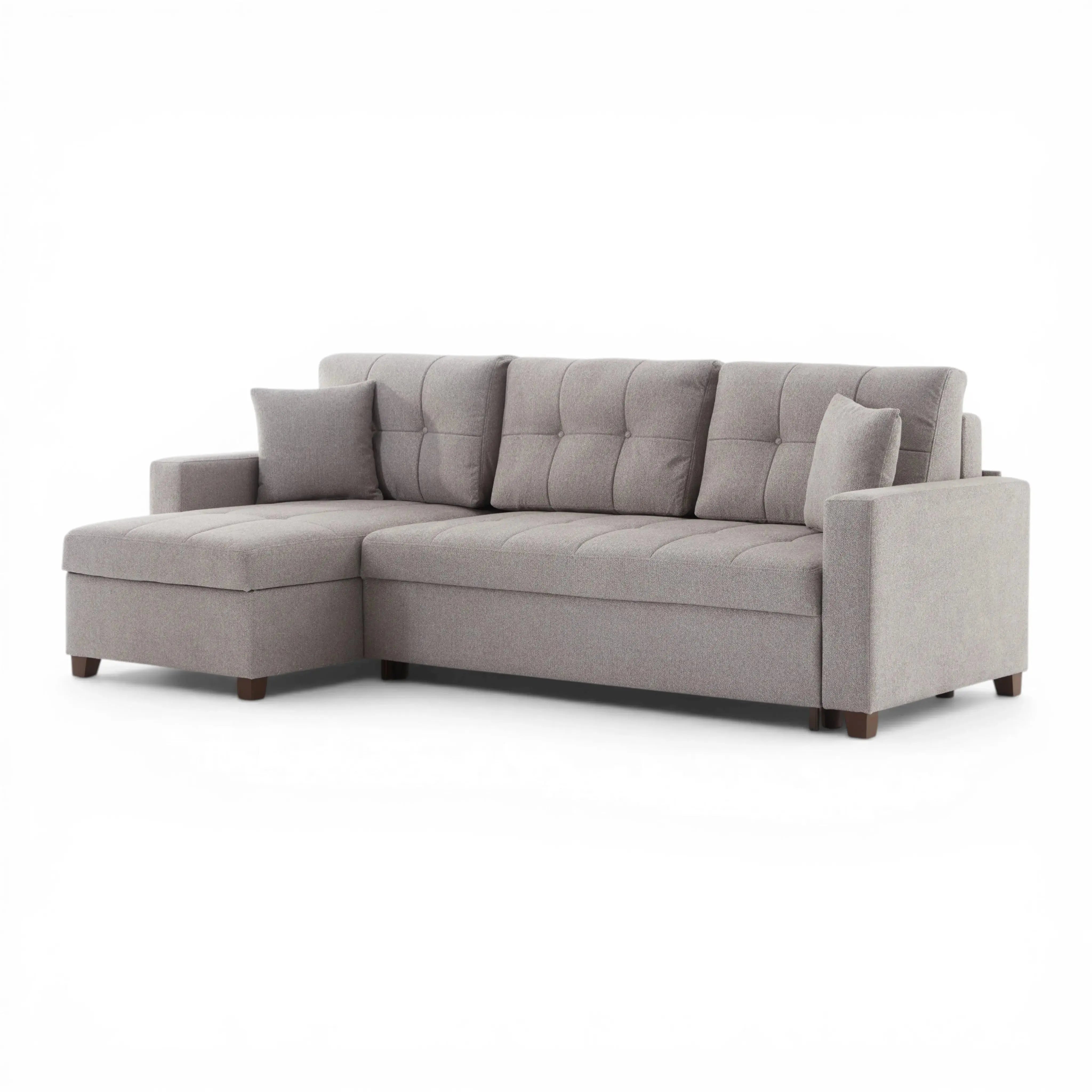 Sofá-cama seccional reversível Mocca de 101" de largura – Chenille cinza Dupont, tamanho queen com espaço para armazenamento