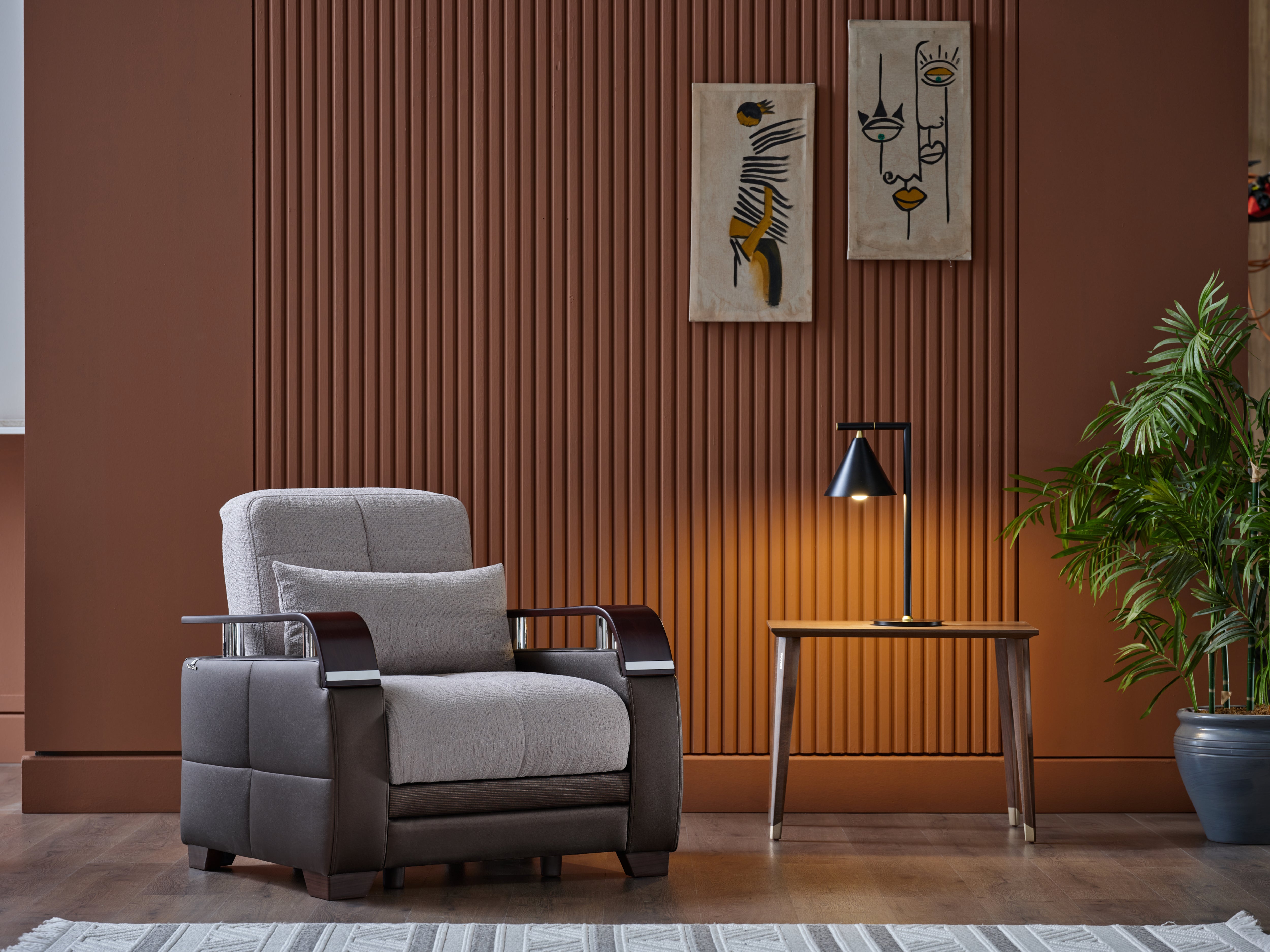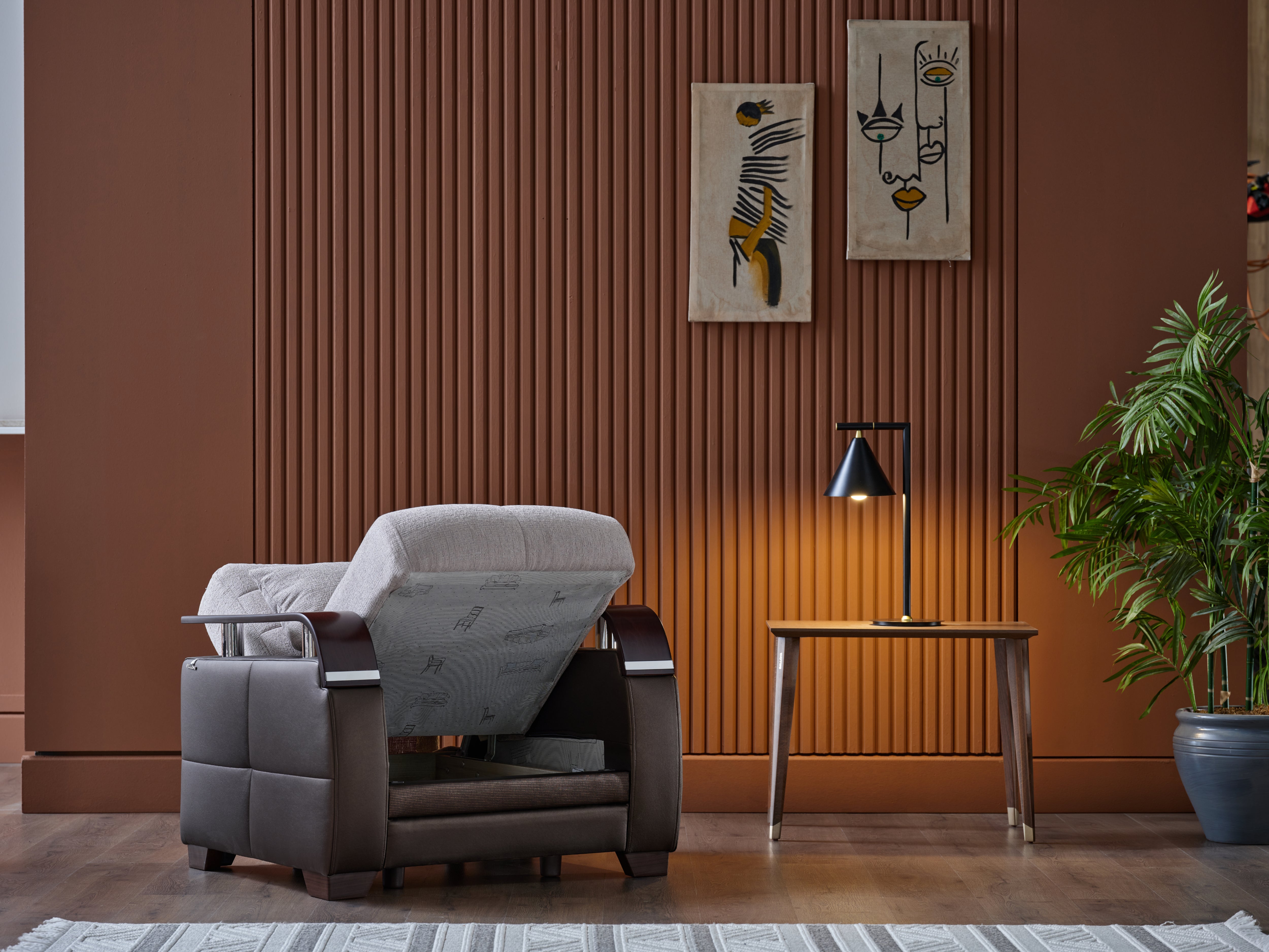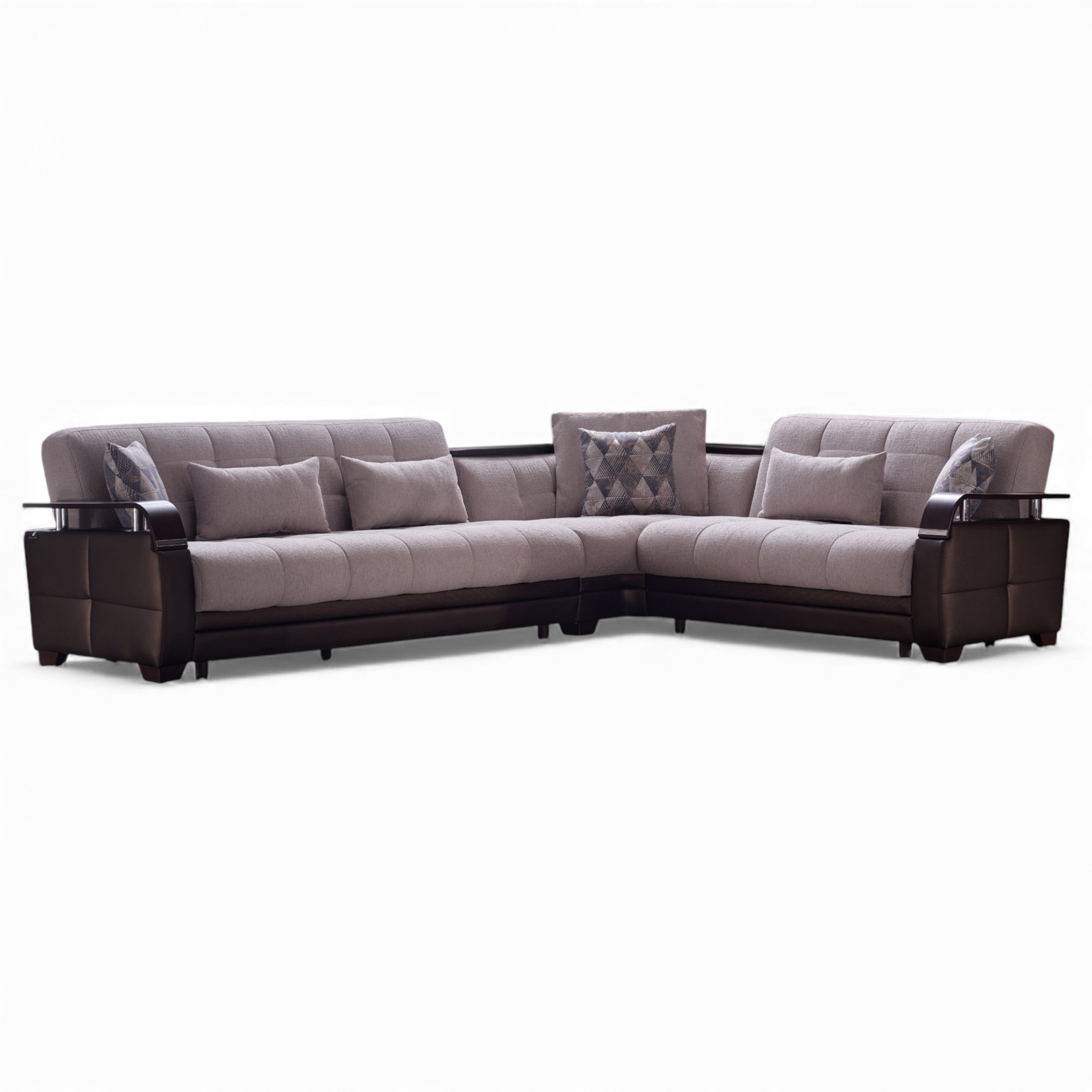 Com um design contemporâneo e divertido e dimensões generosas, o sofá seccional Natural é perfeito para o coração da casa. Esta peça moderna apresenta apoios de braço elevados em madeira com detalhes cromados, um exterior em couro sintético combinado com um interior macio e aveludado, e um perfil curvilíneo atraente. Os assentos espaçosos com módulos nos cantos permitem reunir amigos e familiares. Este sofá seccional possui espaço de armazenamento oculto sob os assentos para facilitar a organização e duas camas dobráveis ​​que oferecem aos hóspedes um lugar aconchegante para passar a noite.