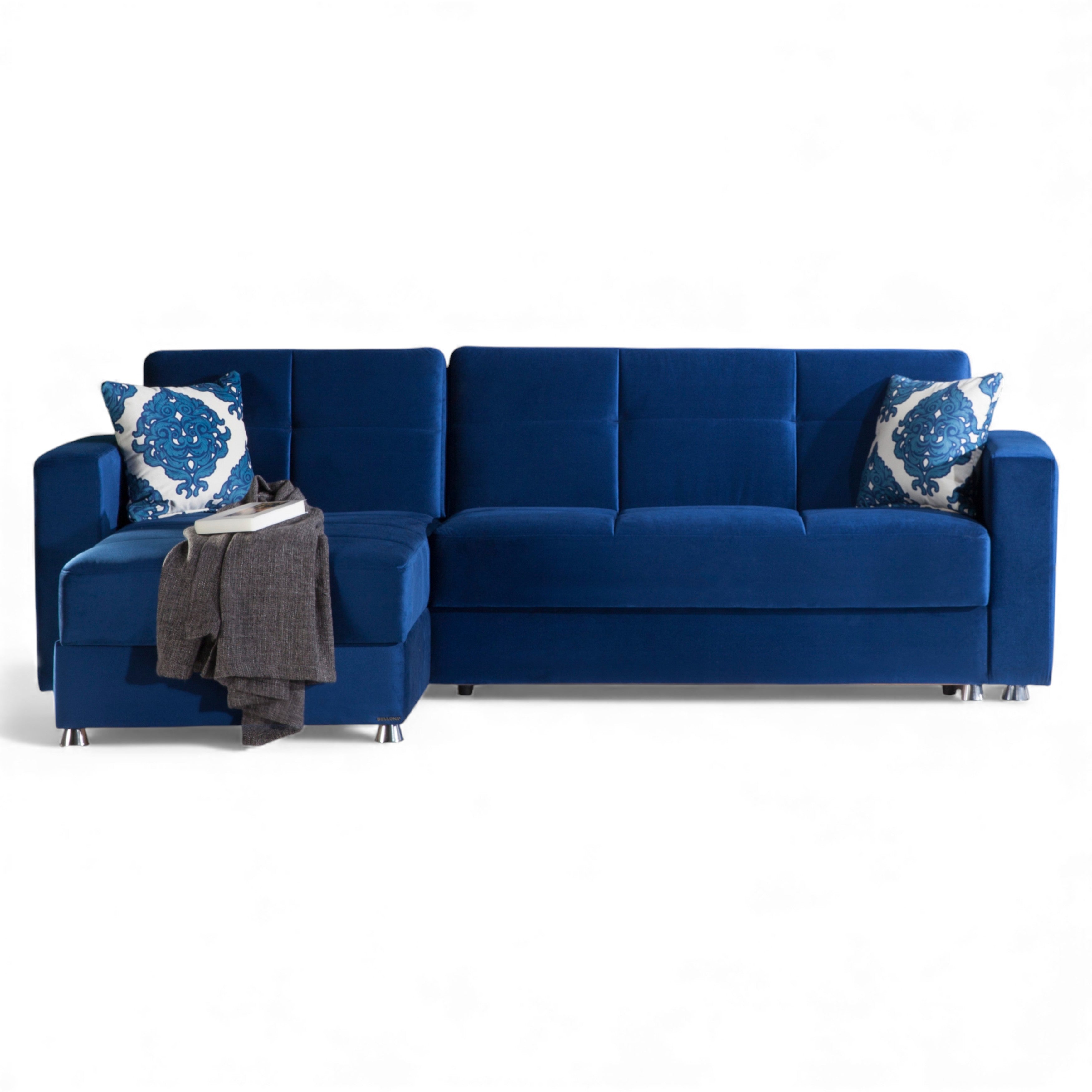 Renove sua sala de estar com o elegante sofá-cama seccional reversível de 2,59 m de largura . Projetado para oferecer conforto e funcionalidade, este sofá seccional em formato de L possui uma chaise reversível versátil , permitindo que você o configure perfeitamente para o seu espaço. O estofamento em veludo macio adiciona um toque de luxo, enquanto o compartimento de armazenamento embutido oferece uma solução prática para guardar cobertores, travesseiros ou outros itens essenciais. Converta-o facilmente em uma cama espaçosa , ideal para hóspedes ou noites aconchegantes em casa. Estilo, conforto e praticidade — tudo em uma peça deslumbrante!